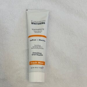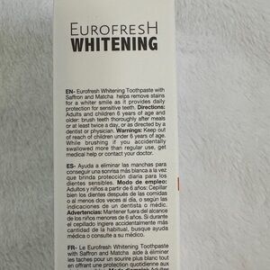 Eurofresh Whitening toothpaste with saffron and matcha. Provides sensitive soothing effect. Refreshing mint flavor.
