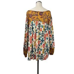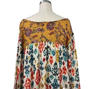 Farmers Market Blouse Woman's Size M Multicolor Boho Charming Art