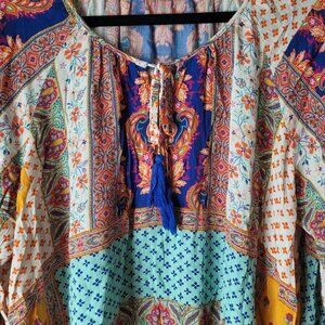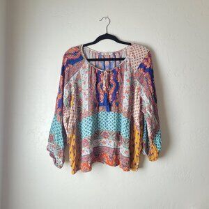 Farmer's Market Paisley Patchwork Print Peasant Boho Top