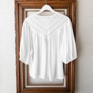 Farmers Market White Cotton Blouse Women’s XL Boho Lace Detail Lined Top