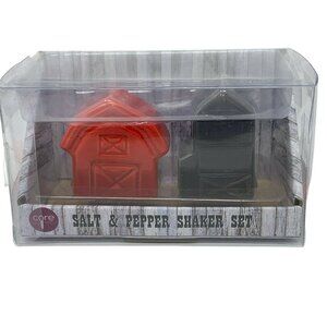 Farmhouse Barn Salt & Pepper Shaker by Core Kitchen Red Black Ceramic