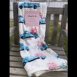 Farmhouse Blue Truck Hearts Plush Throw. New in packaging. Oversized at 50”x70” and ridiculously soft!