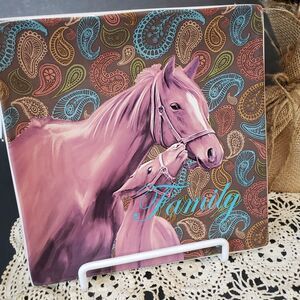 Farmhouse Cracker Barrel Brown Paisley Ceramic Horse "Family" Square Plate 8"