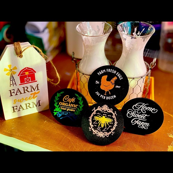 Each item was sanded and/or washed before creating. Painted and designed then top- coated