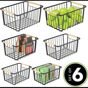 -INSTANT ORGANIZATION: Organize all of your kitchen essentials; Great for dry goods and other kitchen items such as: towels, candles, small appliances and kitchen tools; These also work in the refrigerator or freezer; Classic open wire design offers roomy and easy storage for any room in your home; Use multiple bins side by side for larger spaces or use them individually; Generously sized in 3 different variations, you will find a multitude of uses for these wire storage bins; 6 Piece Set