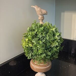 Farmhouse Faux Greenery Topiary with Bird Finial Accent & Resin Base Shabby Chic