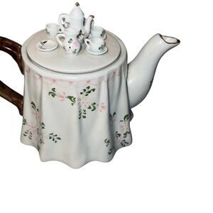 Farmhouse Girl whimsical teapot by the Bombay Company removable tea party lid