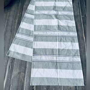 White and gray cotton fabric table runner with textured stitched detail in like new condition. Approx 62” long and 14” wide. Rustic modern boho farmhouse decor style. Perfect for dining or living area. Clean nonsmoking home.