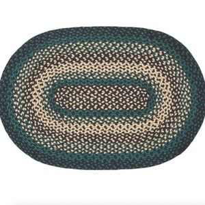 Farmhouse Jute Braided Oval Throw Rug Hunter Green Black Rustic Country Charm