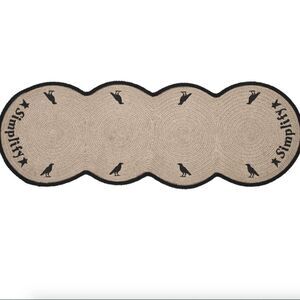 NEW!! Enhance the rustic charm of your cottage core or Farmhouse decor with the VHC Brands Raven Harvest Simplify Stencil Table Runner. Crafted from a blend of braided cotton and polyester, this table runner exudes durability and softness, making it a perfect addition to your kitchen or dining room ensemble. Measuring 12x36 inches and featuring an oval shape, it elegantly drapes over your dining table or kitchen island, adding a touch of primitive elegance to your seasonal gatherings. The table runner showcases a captivating stencil design of the word "Simplify" adorned with primitive ravens and stars, evoking a sense of rustic simplicity and nostalgia. Its earthy color palette, comprised of tan and country black hues, complements the autumnal ambiance, making it an ideal accent piece for your farmhouse table. Whether used as a focal point on your dining table or as a decorative element in your kitchen, this table runner infuses your space with a cozy and welcoming atmosphere. Handcrafted with care, each table runner is unique, showcasing the handmade nature of the product with minor variations in size and color that add to its rustic appeal. To preserve its longevity and vibrant design, it's recommended to hand wash the table runner with mild soap, ensuring it maintains its integrity for seasons to come.