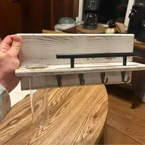 Adorable farmhouse style key rack with vase for flowers and display shelf