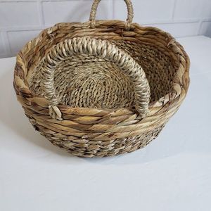 2 Handled Thick Weave Wicker Basket