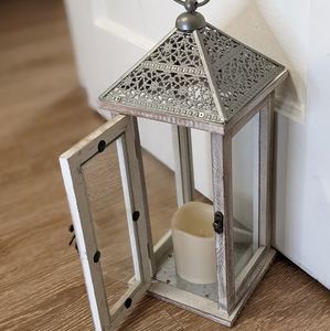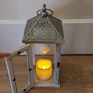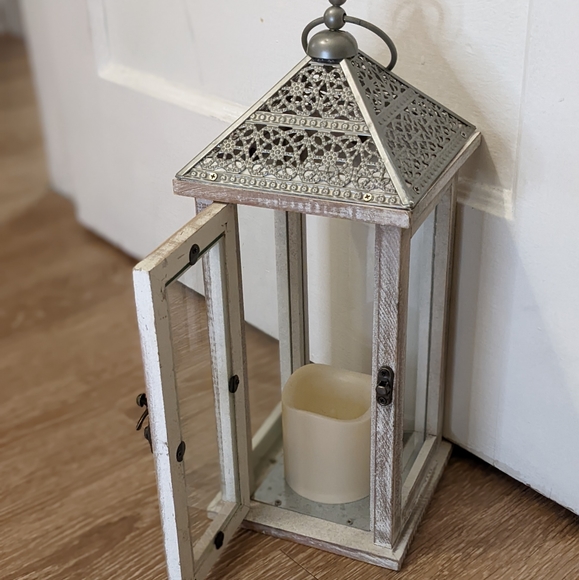 Farmhouse Rustic Lantern with battery operated candle. Switch underneath allows for always on option or timed on option.