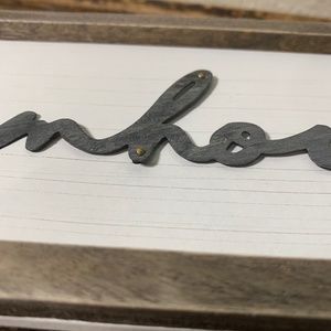 Farmhouse Rustic Sign. Raised metal “farmhouse” on wood backing, picture hangers on back for easy hanging