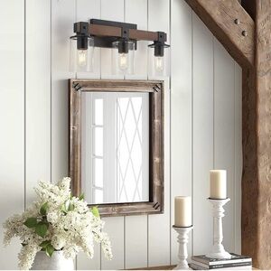 Farmhouse Vanity 3-Light Bathroom Wood Wall Light Over Mirror Clear Glass Shade