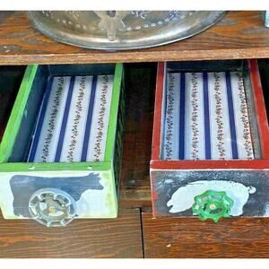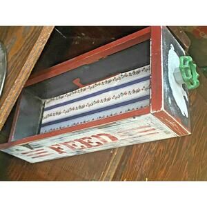 Transform your space with this authentic farmhouse wooden drawer crate featuring a unique pig feed spigot handle. This rustic organizer perfectly combines country charm with practical storage, ideal for kitchens, entryways, or living areas.