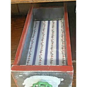 Farmhouse Wood Drawer Crate w/ Vintage Pig Feed Spigot Handle, Red/Black