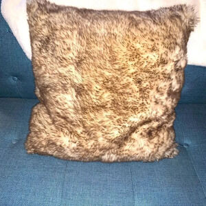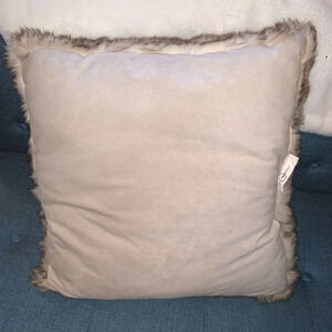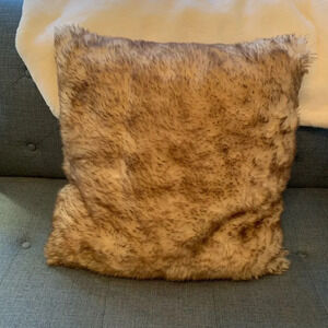 Faux Fur Square Throw Pillow - tip dyed neutral/tan coloring - furry on one side only and the other side is a creamy neutral solid color, feels soft like flannel