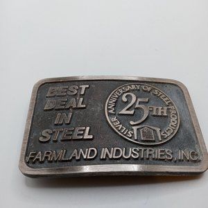 Farmland Industries Belt Buckle Distressed 25th Anniversary Country Western Cowboy