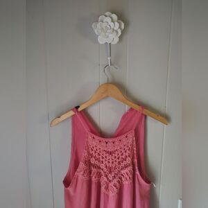 Faroro Pink Salmon Haltar Maxi Dress Macrame Crochet Neckline Large