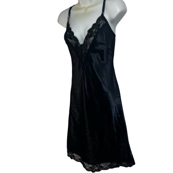 Farr West Black Lace Trim Full Slip Dress – Size Medium – Made in USA - Vintage