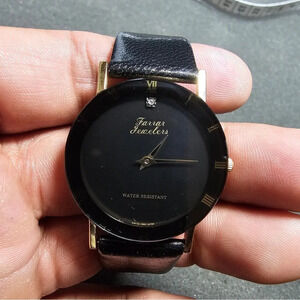Farrar Jewelers Ladies Fashion Quartz Watch Working Black Gold Roman Numeral see puctures for reference