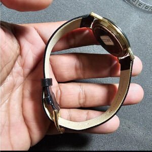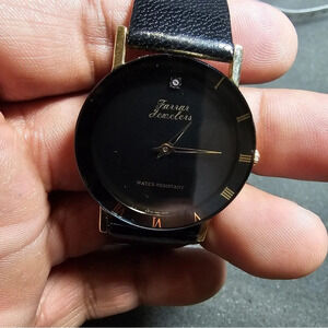 Farrar Jewelers Ladies Fashion Quartz Watch Working Black Gold Roman Numeral