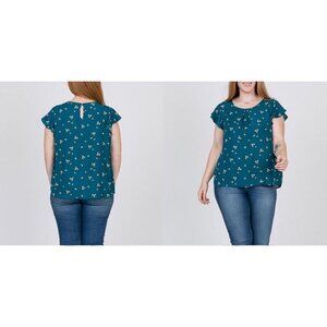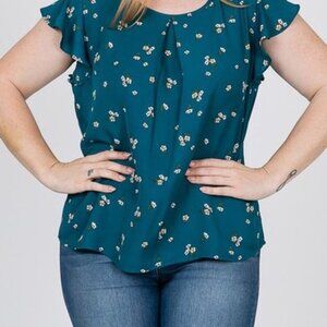 Indulge in the luxurious look and feel of our Farren Teal Blouse. This stunning top boasts a true-to-size fit, teal floral print, and elegant ruffle sleeves. Crafted from a silky smooth satin material with a low sheen, this plus-size tunic top features a sophisticated wool dobby pattern that adds a touch of art and literature-inspired flair. Elevate your wardrobe with this tasteful and exclusive piece that exudes timeless elegance.