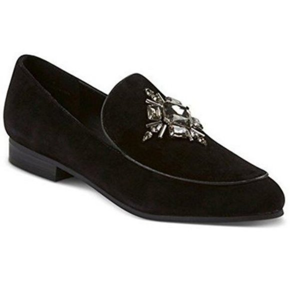 Faryl Robin Women's Easton Rhinestone Embellished Black Suede Loafers, 7, 7.5, 8