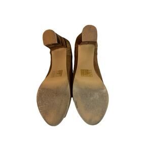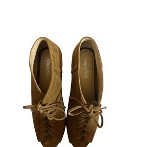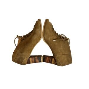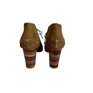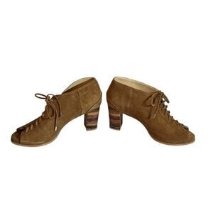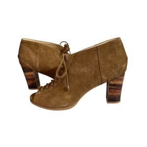 Faryl Robin Women's Peep Toe Suede Lace Up Ankle Stacked Heel Bootie Sz 9 Brown