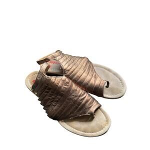 Farylrobin | Bronze Metallic Leather Toe Ring Ankle Strap Sandals Size 8