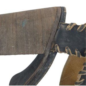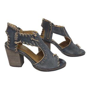 Farylrobin Loki Full Leather Chunky Heel Sandal Womens Size 8.5 Gray Black