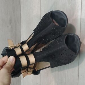Farylrobin Womens Ankle Suede Zip Back Heels Sandals boots shoes sz 7