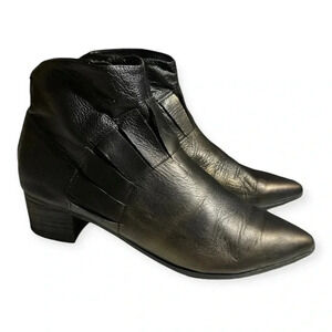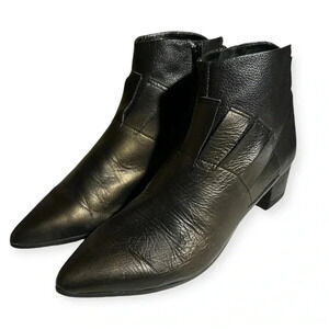 Farylrobin Women's Black Leather Ankle Boots Size 7.5 Pointed Toe Western Style