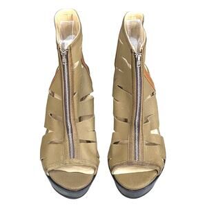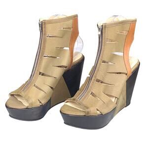 Farylrobin X Anthropologie Women’s Tan Leather Zip Up Wedge Size US 7