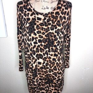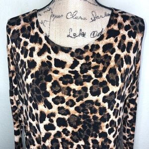 Fascination Leopard Print Black & Brown Tunic Top Size Medium