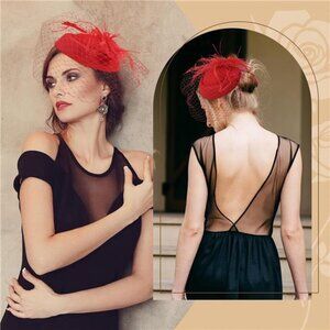 This hat is exquisitely designed with fluffy feather decorations and mesh design. It can be worn in front to cover half of the face, giving a very elegant and mysterious feeling. It can also be worn at the back to appear very noble.