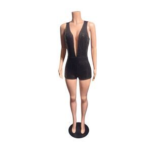 Nwt Black glittery romper with deep V-neckline and sparkly details #glamour #partyoutfit