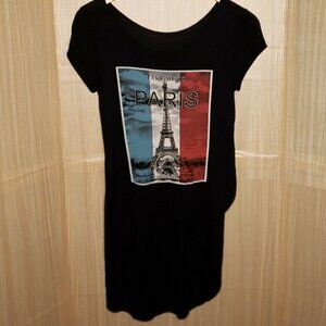 Fashion 21 women’s black short sleeve Paris high low knit top large. Gently used condition. Measurements are: 16 ½" from armpit to armpit, and 23 ½" from shoulder to shortest part of hem.