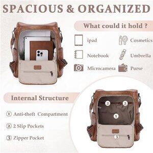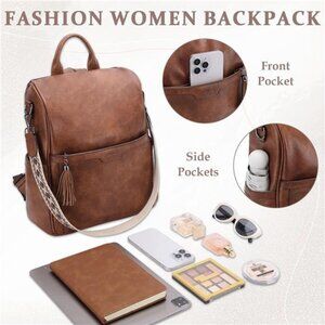 Chic backpack designs with anti-theft back zipper closure,which keeps your belongings safe.The medium backpack features with multi-pockets,main compartment with 1 zipper pocket and 2 slip pockets,which is roomy for ipad,phone and other items,External with 1 front zipper pocket,2 side pockets for water bottle,umbrella that can hold your daily essentials.It is a great everyday purse,book bag,work backpack or a travel backpack.