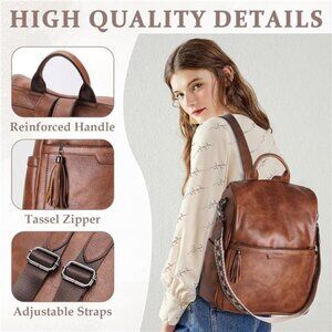 This leather backpack with tassels is trendy and practical.With a removable wide guitar shoulder strap and adjustable back strap and top handle,it could be carried in different ways,such as backpack,single-shoulder bag/sling bag or handbag.The cute wristlet purse provides more room to organize your essentials.Ideal for working,dating, party,shopping,traveling,beach and other activities.