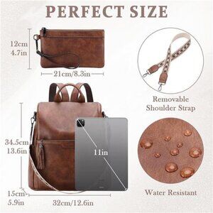 This women's purse backpack measures 32x15x34.5cm/ 12.6x5.91x13.59in.And weights 0.92kgs. This fashion backpack comfortably holds cosmetics,phone,water bottles,tissues,cards and other daily items. Multi-functional storage compartment with functional pockets to keep your items well organized.