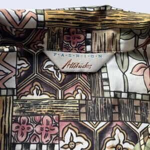 Fashion Attitudes patchwork geometric button up blouse brown green collared 90s