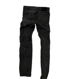 Fashion Black Slim Ribbed Zippered Jeans Streetwear 28x28