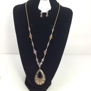 Fashion Boho Brown and Gold Glass Statement Necklace and Dangle Earring Set. Brand new on jewelry card in plastic bag.
