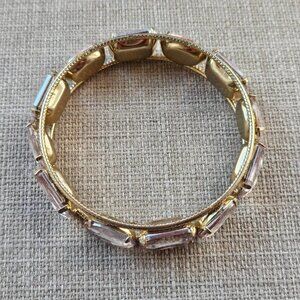 Fashion Bracelet Wrist Band Pink Crystals Gold Tone Bangle Style Bracelet New