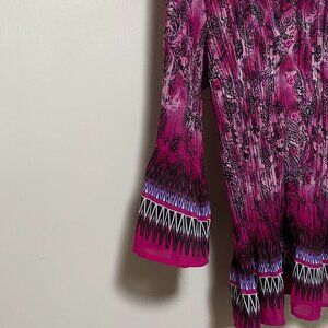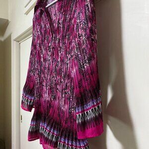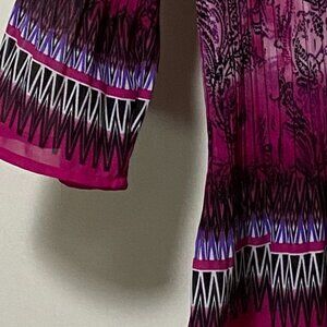ends of sleeves & bottom of blouse in purple, black & magenta.
