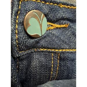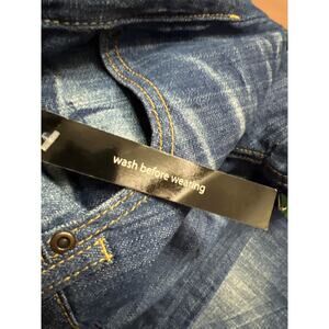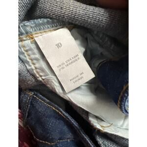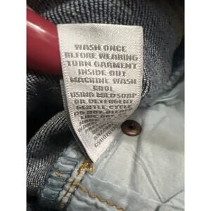 This product is a pair of vintage 90's Y2k women's jeans in a size 10 with a high rise and flare leg style. The jeans are made of denim with a medium wash and feature a button and zipper closure. The design includes a 5-pocket design and is accented with buttons, zippers, and logos. Perfect for those who love the retro fashion of the 90s and Y2k era, these hip hugger jeans are a stylish choice for any season. Machine washable and made of a cotton blend fabric, these jeans offer a slim fit and a touch of nostalgia.