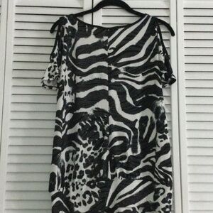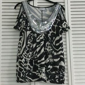 Fashion Bug Animal Print Cold Shoulder Tee with Silver Sequin Detail