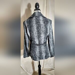 Very stylish Women's Jacket done in Velour with an On-Trend Python print in Black & Grey. Beautifully constructed & is partially lined. Excellent Condition!